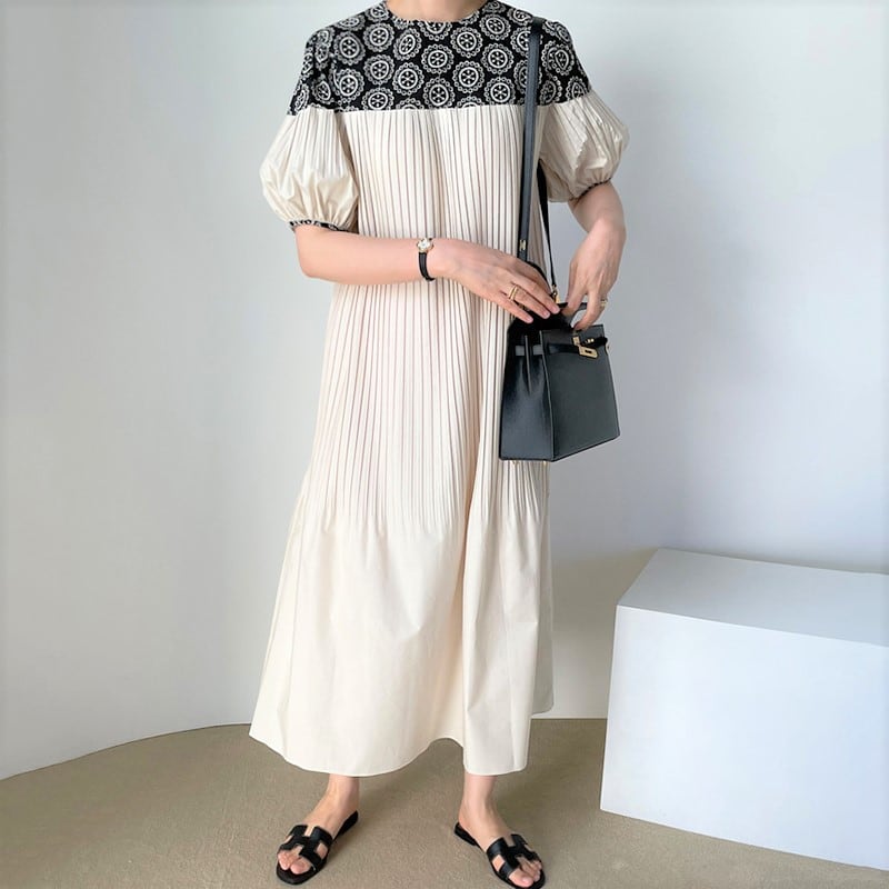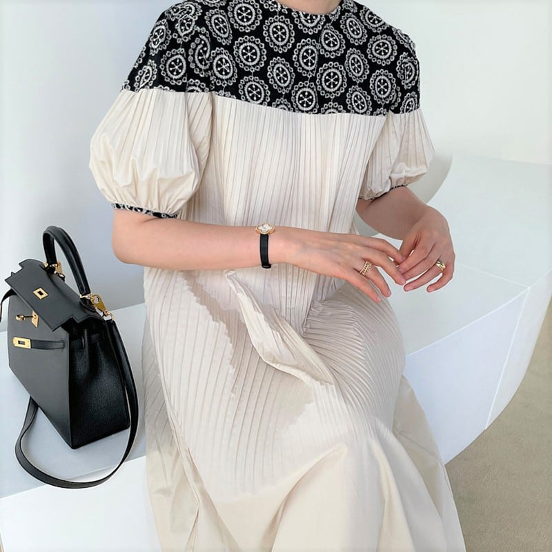 フラワーステッチワンピース