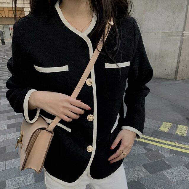 ノーカラーラウンドネックジャケット