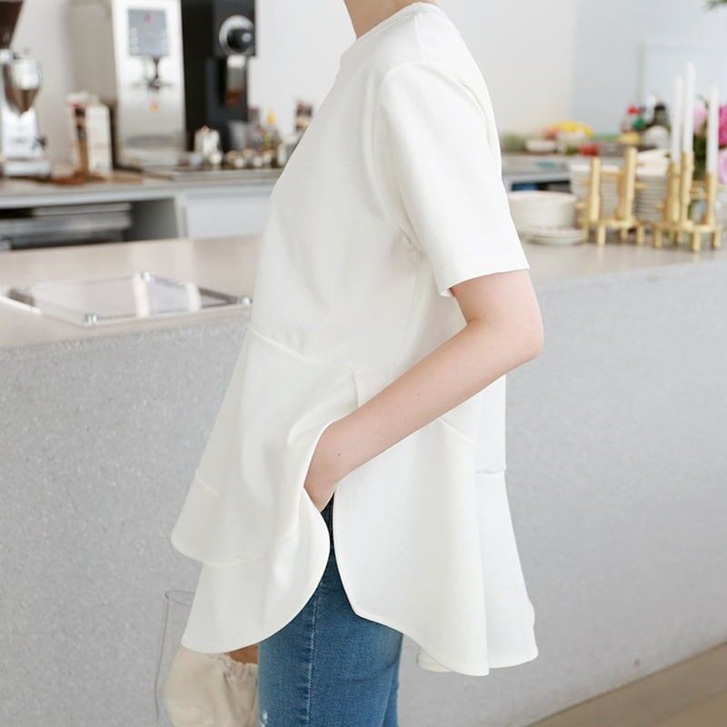 綺麗なフレアシルエットに仕上げたTシャツ。