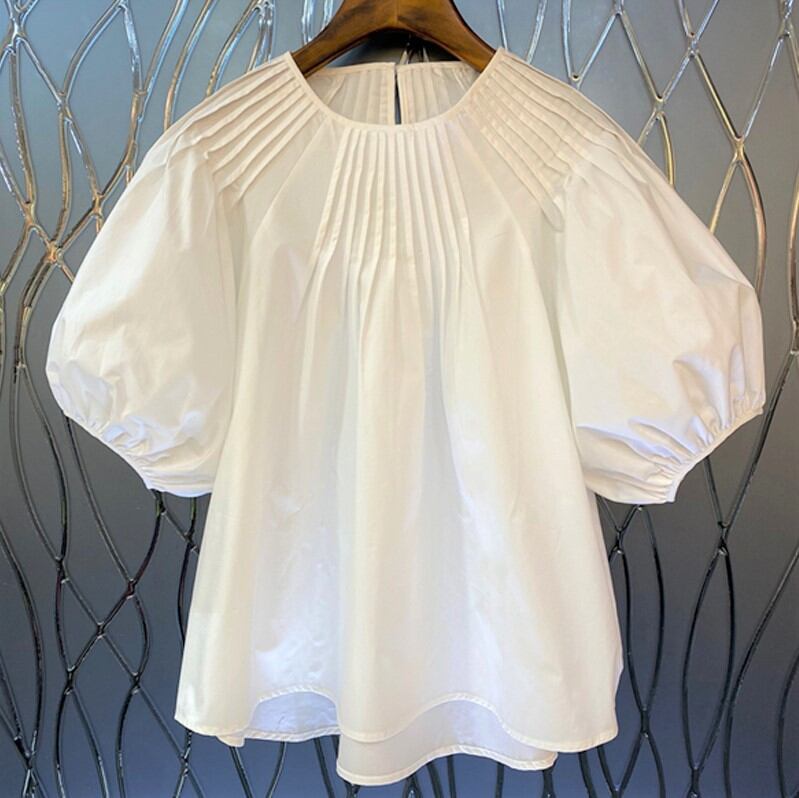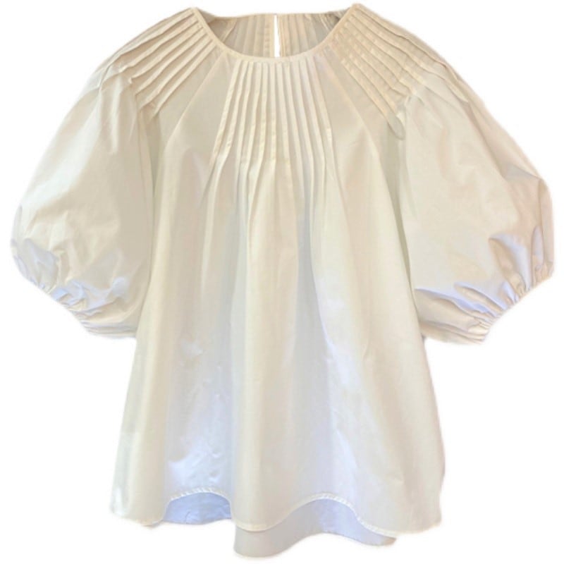 ギャザーとボリュームスリーブで女性らしいブラウス。