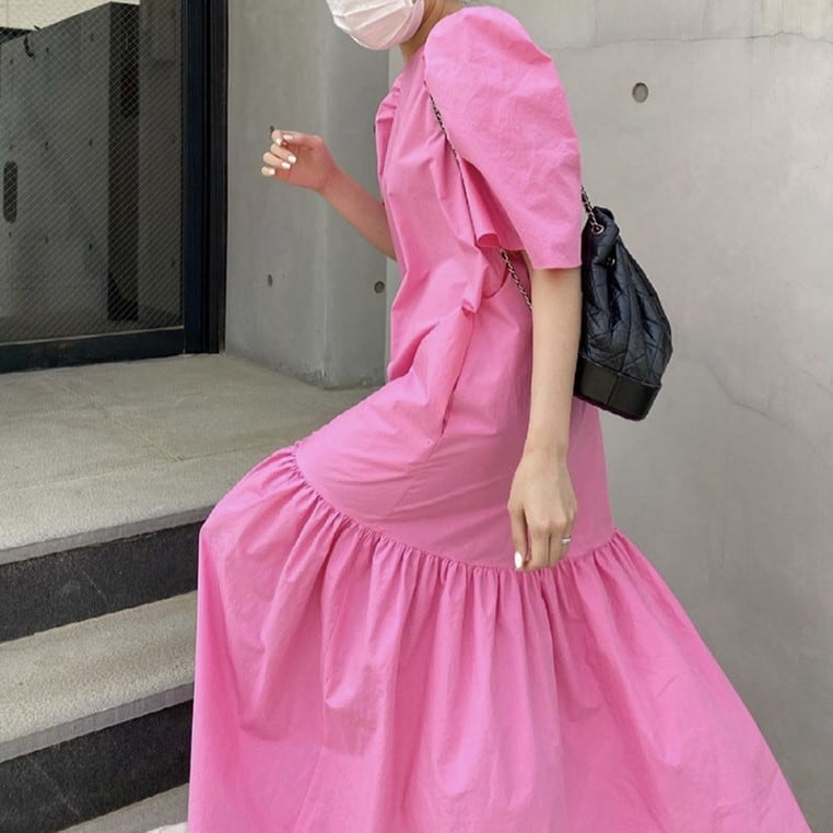 裾のギャザーが広がってシンプルながら