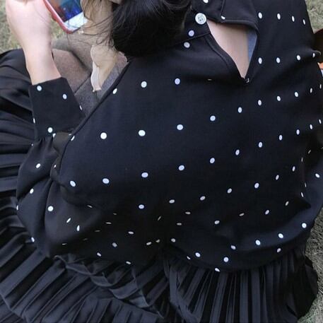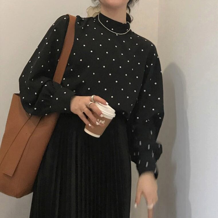 定番のドット柄ブラウス。