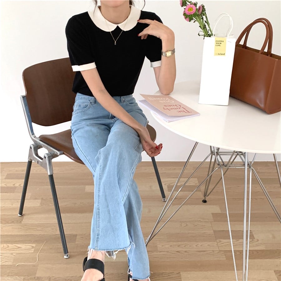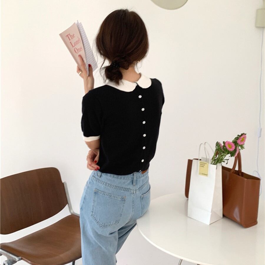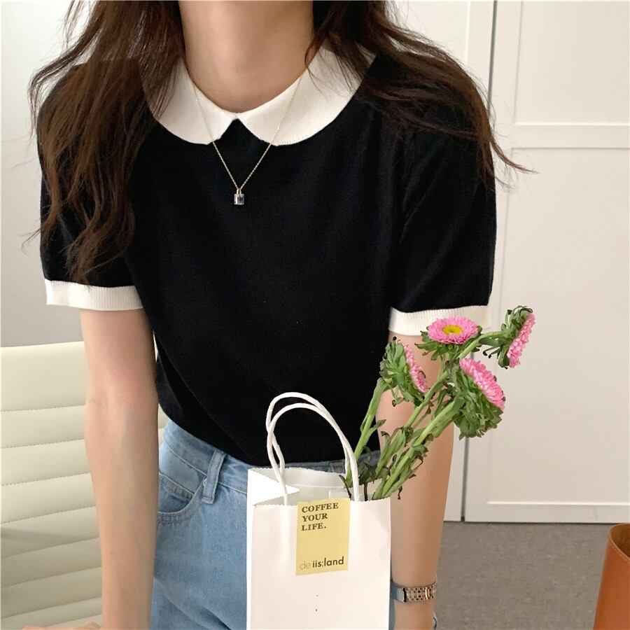 ラウンドカラーサマーニット T0158