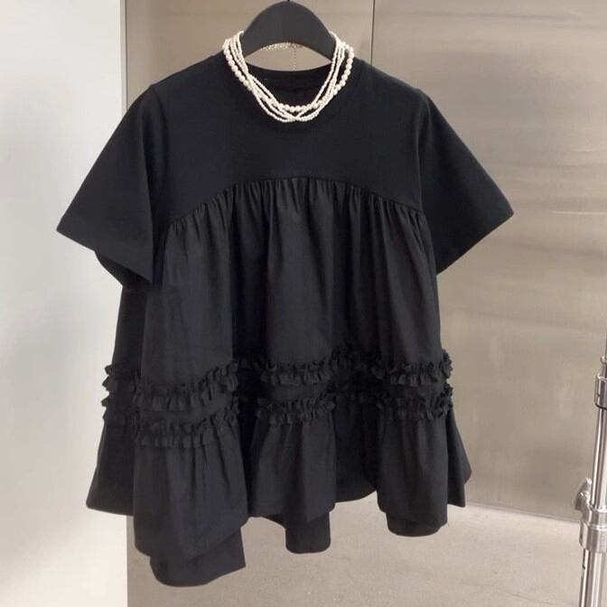 バイカラーフリルTシャツ T0174